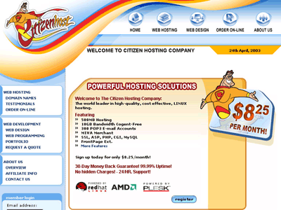 Citizen-Hosting, Inc. is a leading pioneer in Linux Web Hosting in the 21st Century. Its top priority is quality service and customer support. Citizen-Hosting.com offers a unique solution to meet the needs of all Internet sites large and small. “The Citizen Hosting Company is the Premier Linux Hosting Company in the world!”